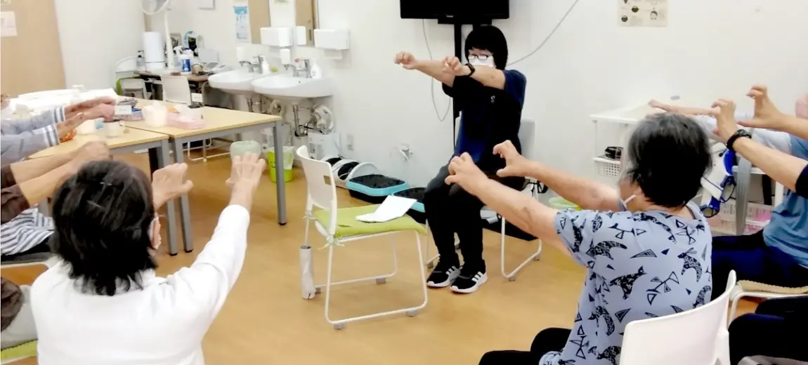 Fさん(69歳 女性)明るい雰囲気の中で、笑顔で過ごせるのが嬉しいです。スタッフの方も丁寧で安心感があります。体操やレクリエーションのおかげで、体も気分もスッキリします。